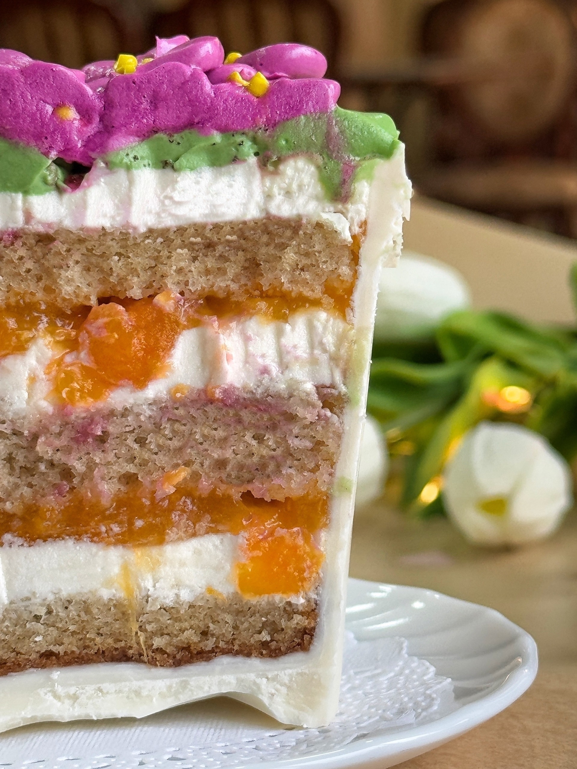 "Молочная девочка" - нежные тонкие коржи на сгущеном молоке со сливочным крем чизом и абрикосовым конфи
