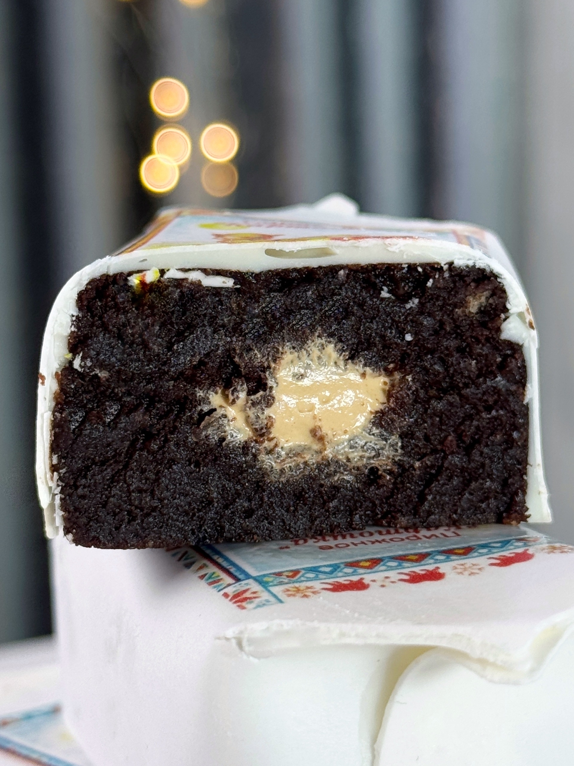 "Дуэт" - насыщенный бисквит из тёмного шоколада, пропитанный молочным сиропом, с нежным кремом из белого шоколада между слоями.